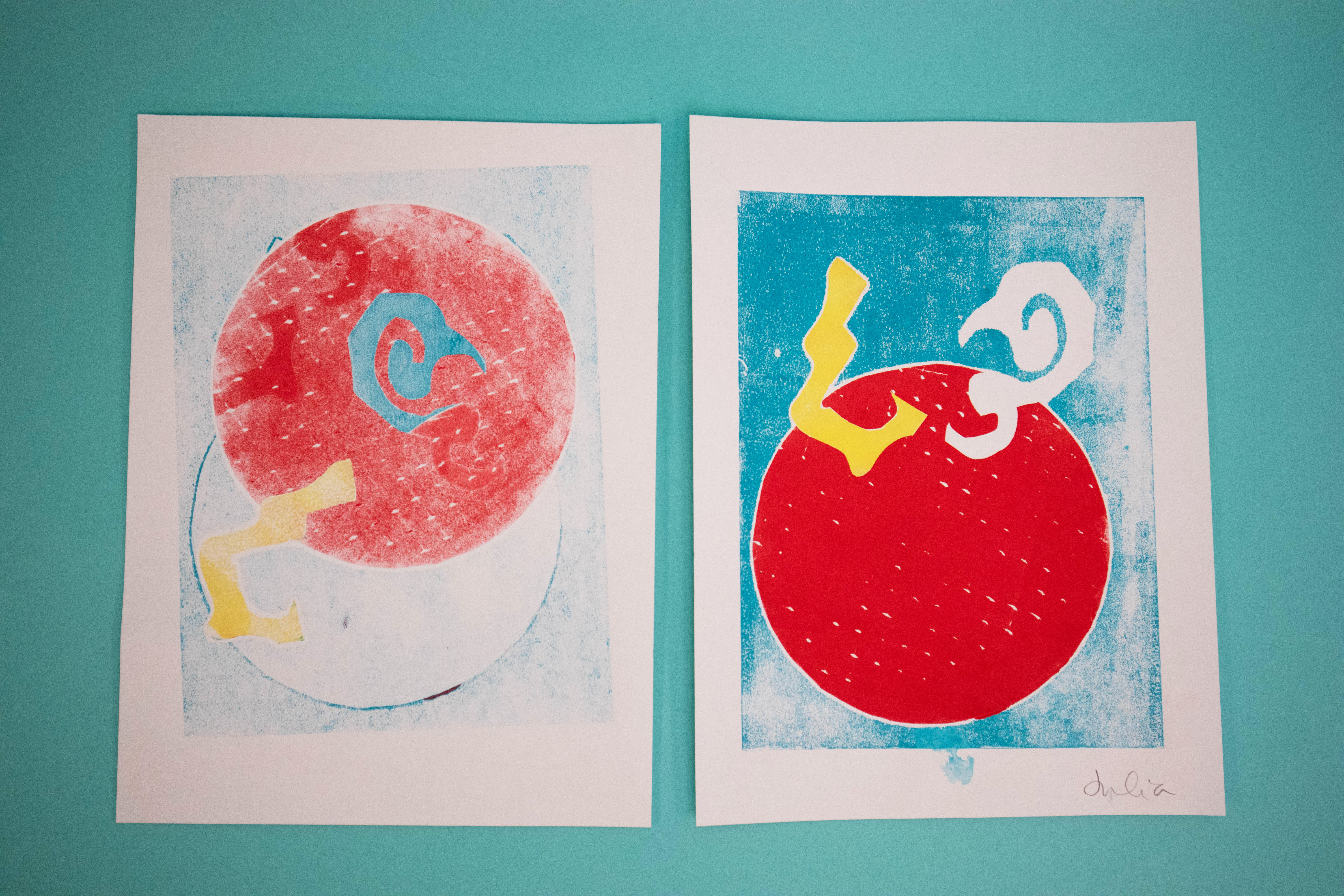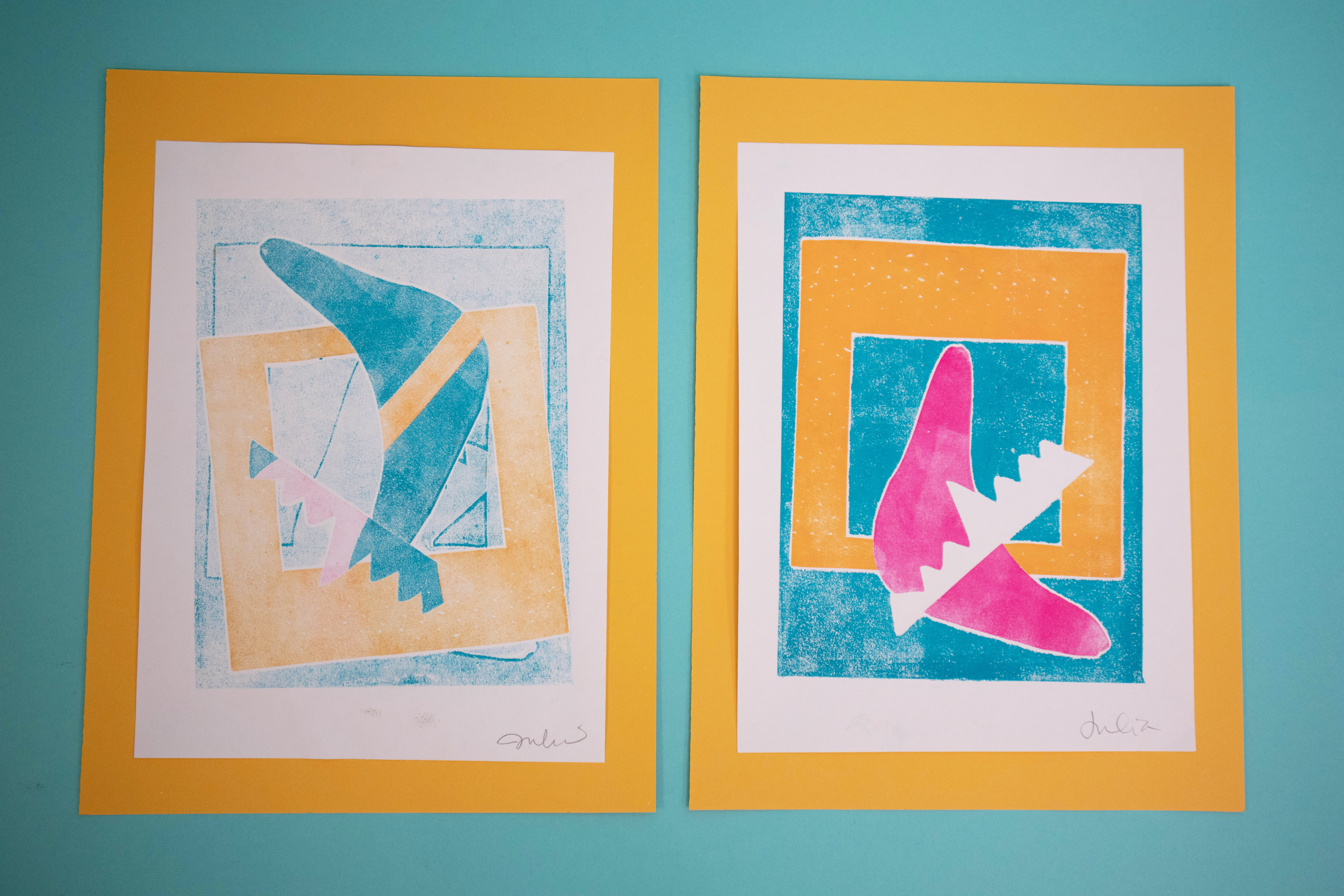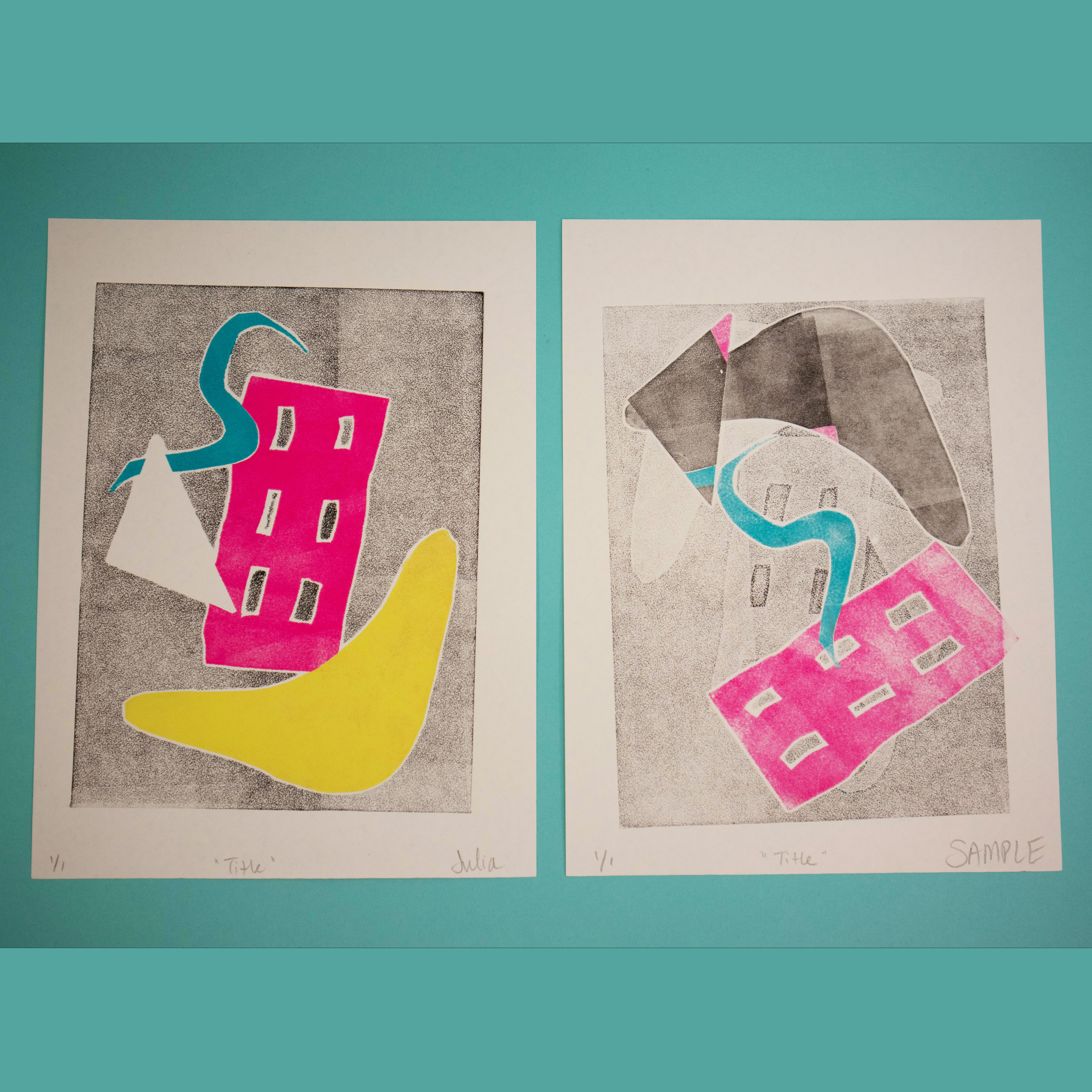 For a small group of older students, this offers an excellent opportunity to practice composition as students can create multiple ghost prints with the same shapes and see how printmaking can be an iterative process (without carving). For a custom workshop, students can also design and cut their own shapes.